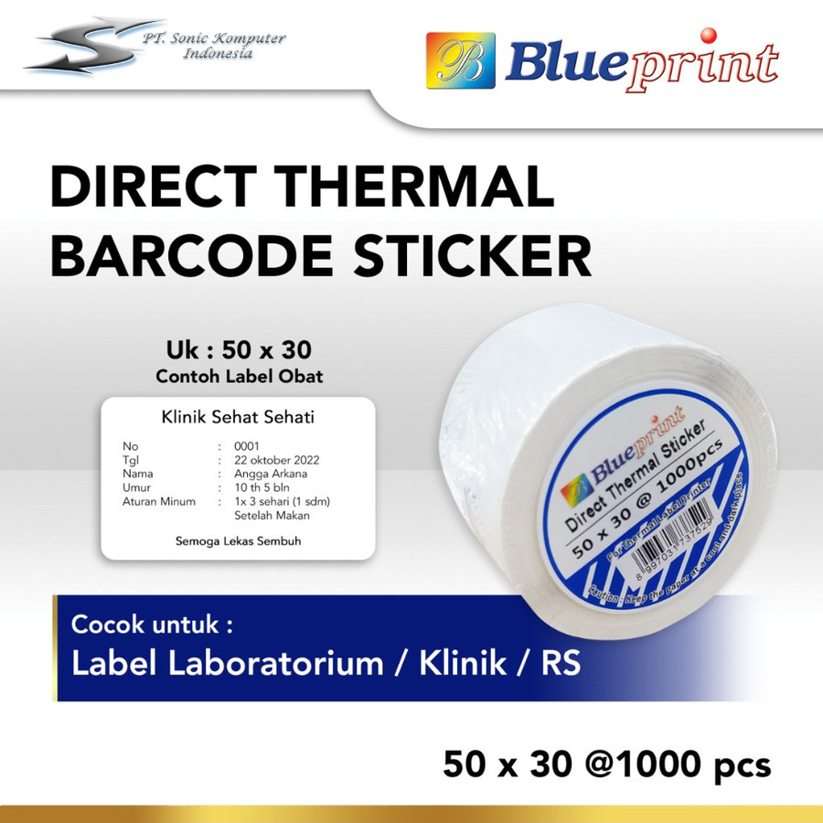 Stiker Barcode Label / Sticker Barcode Thermal BLUEPRINT Ukuran 50mm X 30mm