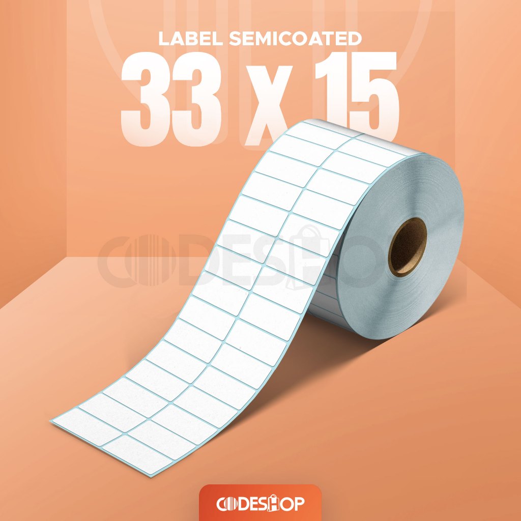 Label Stiker Semicoated 33x15 mm Codeshop 2 Line Core 1 Inch Isi 5500 Pcs Roll Printer Barcode Semicoat