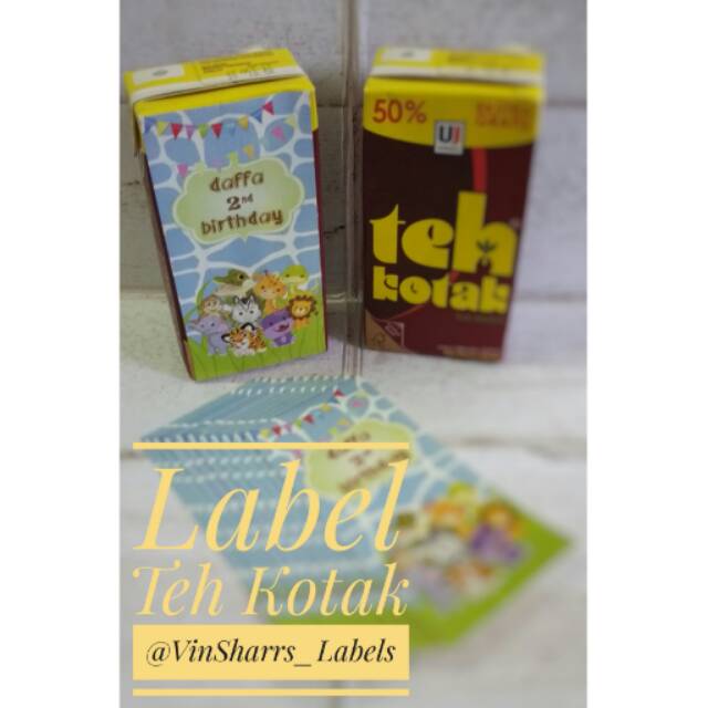 Label sticker teh kotak utk acara ultah anak bisa custom tema ultah si kecil.