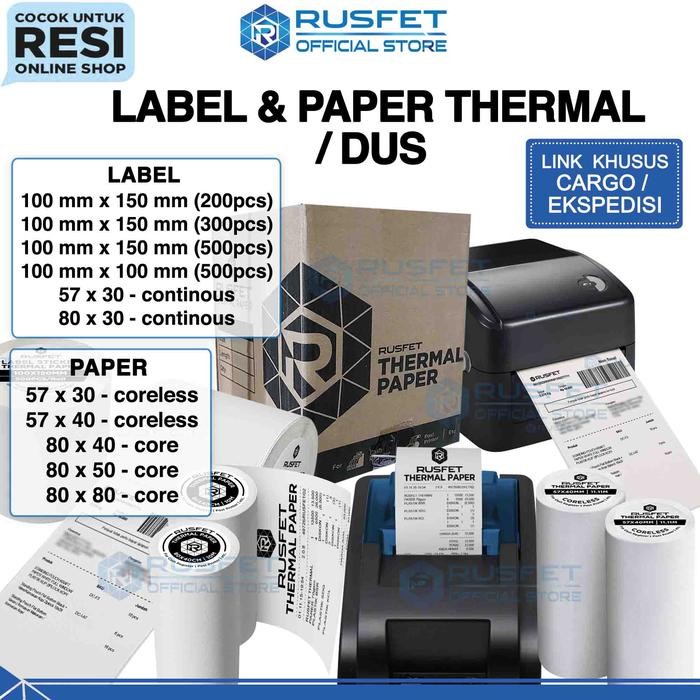 Label Thermal Paper Sticker Kertas Printer Resi Paket Pengiriman Barcode Pos RUSFET / DUS KARGO
