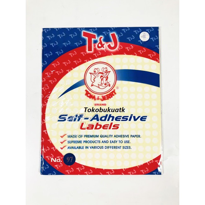 Tom & Jerry No. 97 adalah label sticker yang terbuat dari kertas stiker berkualitas tinggi dan mudah digunakan. Ukuran diameter 8 mm ini terdiri dari 10 lembar, per lembar 320 sticker