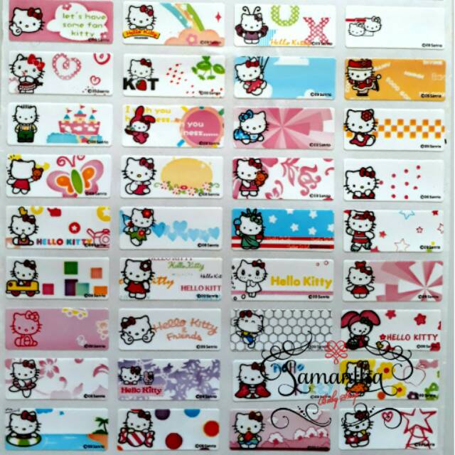Label nama waterproof motif Hello Kitty