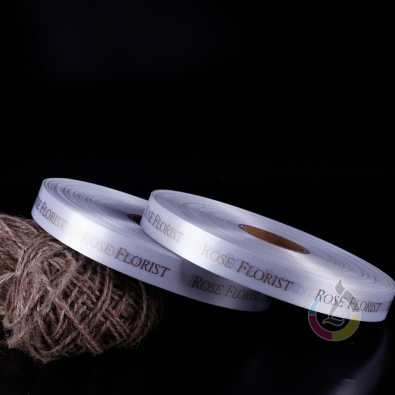 label satin putih ukuran 2cm, panjang desain menyesuaikan, warna sablon bebas, sablon satu warna