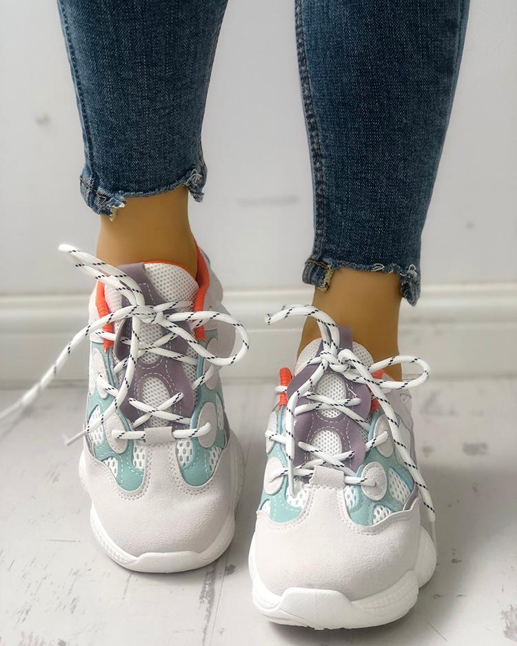 Lace-Up Net Splicing Breathable Sneakers