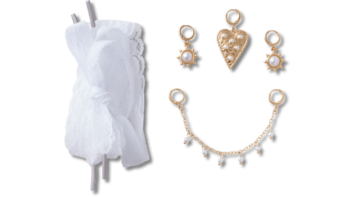 Pop some personality into your shoes with this LacesandPearlChainCharmKit Jibbitz™ charm. It's the perfect addition to your favorite pairs of clogs, slides, and more.Not a toy. Not intended for children under 3 years of age.