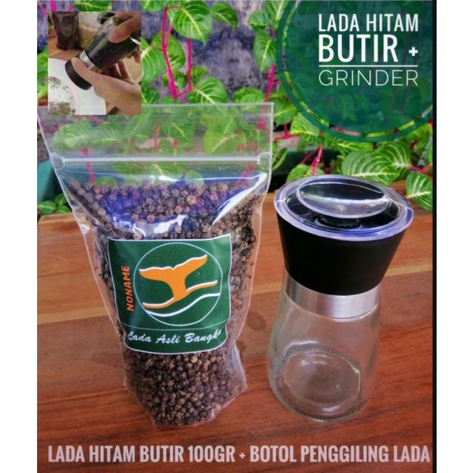 Lada Hitam Butir 100 gram + Botol Penggiling Manual (Pepper Grinder).