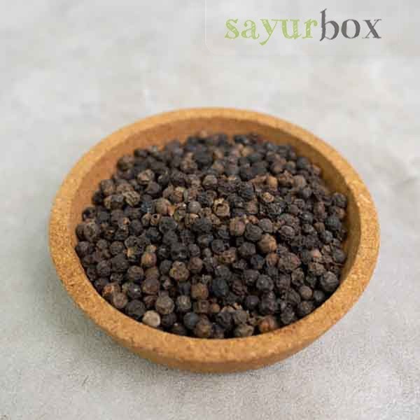 100% lada hitam utuh / butir untuk meningkatkan cita rasa masakan Terdapat potensi kelebihan/kekurangan gramasi +-10% per pack