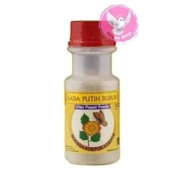 merica putih bubuk yang diproduksi oleh merek Bunga Koepoe. Bumbu dapur ini terbuat dari biji lada putih yang berkualitas dan diproses menjadi bubuk halus. Lada Bunga Koepoe tersedia dalam kemasan botol 85gr.