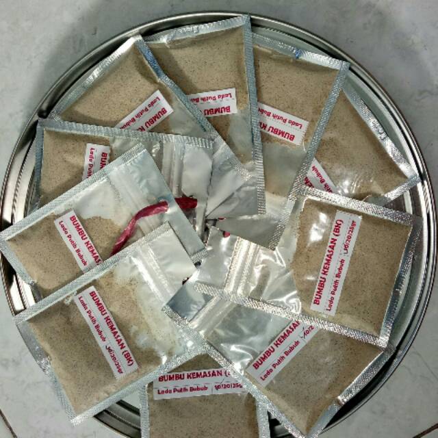 Bumbu kemasan ekonomis lada putih bubuk cocok digunakan untuk segala masakan tumisan dan berkuah.