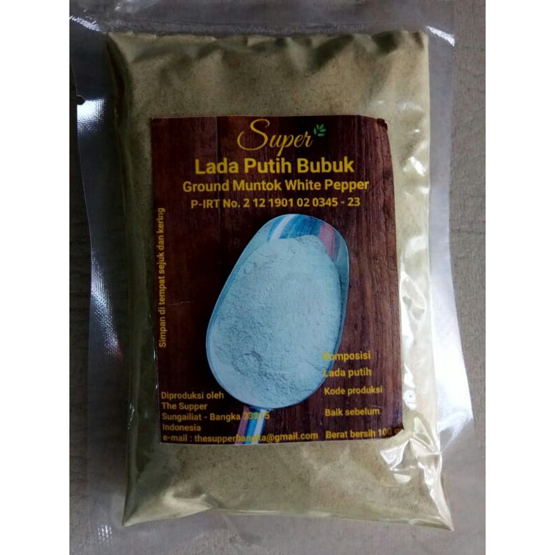Lada Putih Bubuk Super terbuat dari biji pilihan cocok untuk masakan di dapur tinggal langsung di pakai tidak usah di giling dan di tumbuk, serta tercantum BPOm dan Halal
