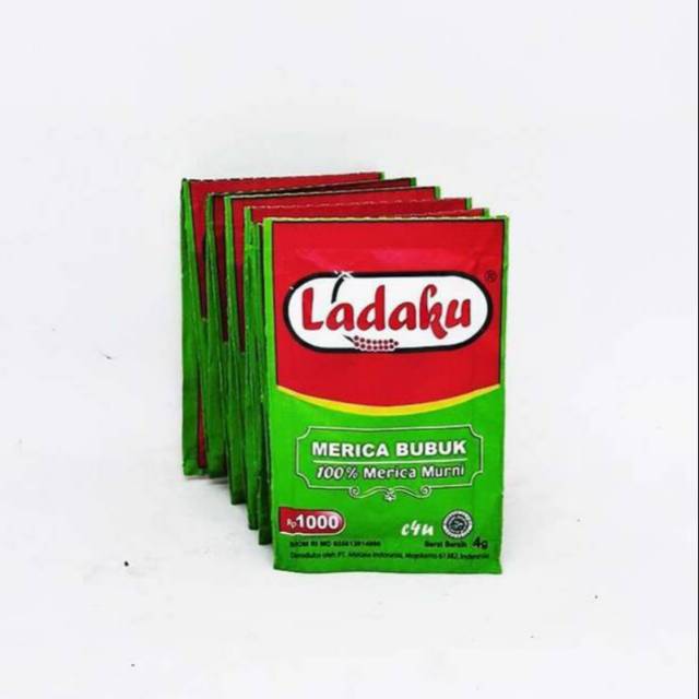 Ladaku, produksi PT. Motasa Indonesia - Mojokerto. Berupa merica bubuk murni 100%. Diproduksi dgn modern dari kekayaan rempah alam Indonesia yg terkenal dari dahulu. Merica bubuk yg bersih, berkualitas terbaik, dgn kemasan sachet yg praktis dan higienis. Dijual dalam kemasan renceng isi 12 sachet dgn netto persachet: 4 gr berdesain menarik.