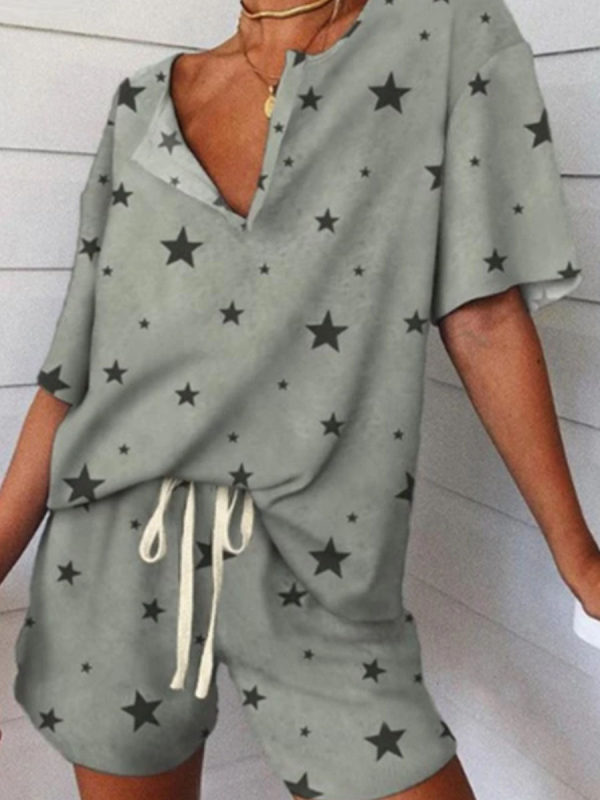 homewear,ladies all-piece printed loose casual two-piece suit
