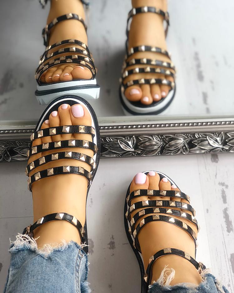 Ladies Rivet Multi-strap Platform Muffin Sandals