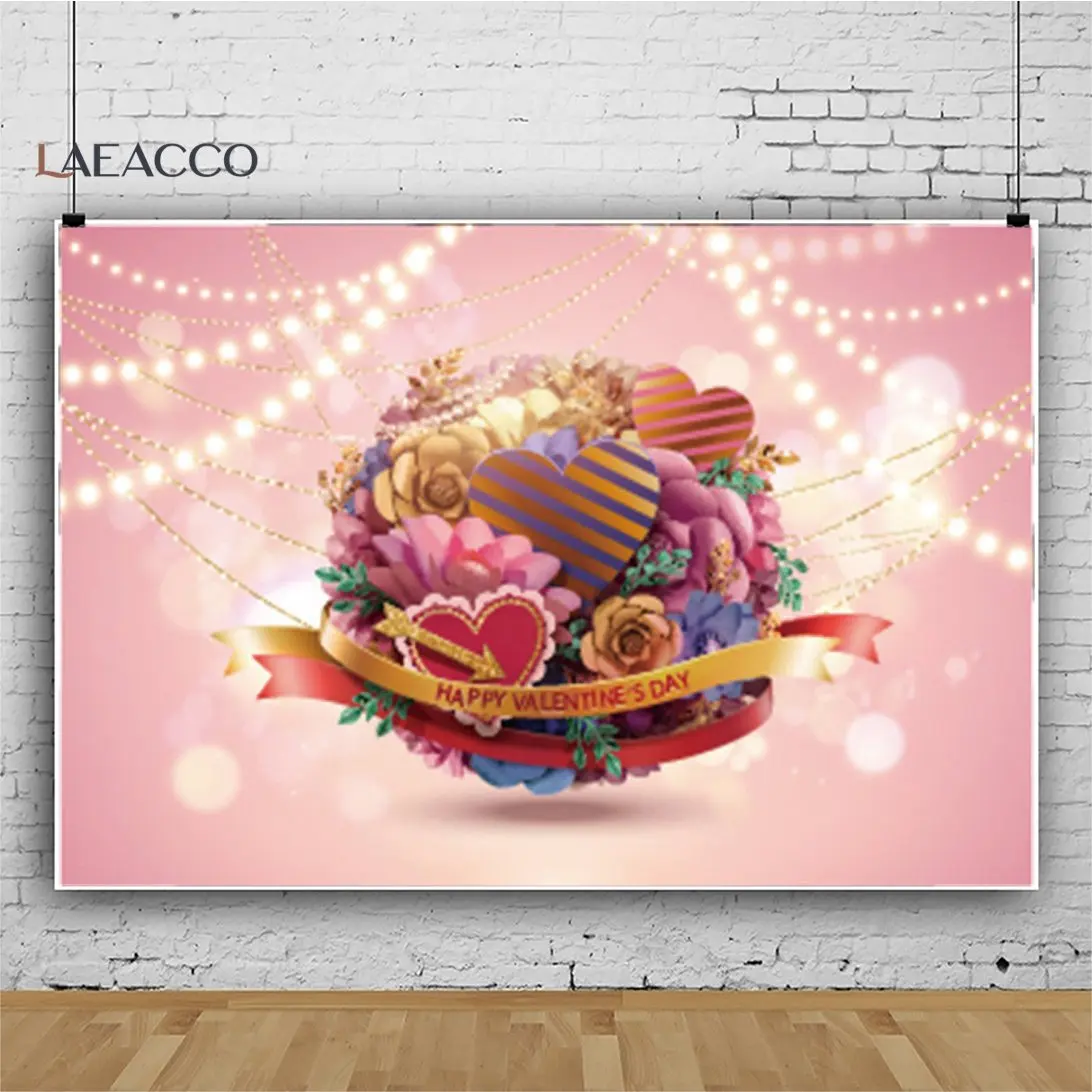 Laeacco Розовый любовь сердца светильник боке День Святого Валентина мечта свадьба фон для фотостудии