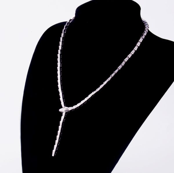 choucong animal brand new luxury jewelry delicate handmade 18k white gold fill pave white cz diamond snake women necklace, Silver