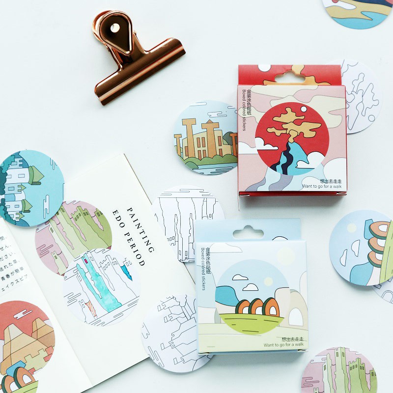 Tidak seperti stiker lainnya, stiker dekorasi Landmark Illustration bisa untuk dijadikan hiasan sekaligus mengasah kreativitasmu. Stiker berbentuk bulat ini berbahan kertas dan datang dalam 2 jenis, yang sudah berwarna dan yang masih putih, untuk kamu isi sendiri dengan pilihan warna favoritmu.
