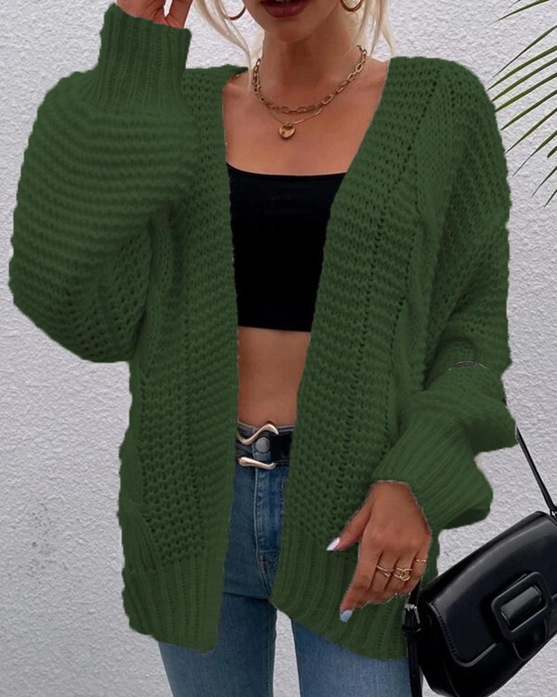 Lantern Sleeve Open Front Cable Knit Cardigan, Green