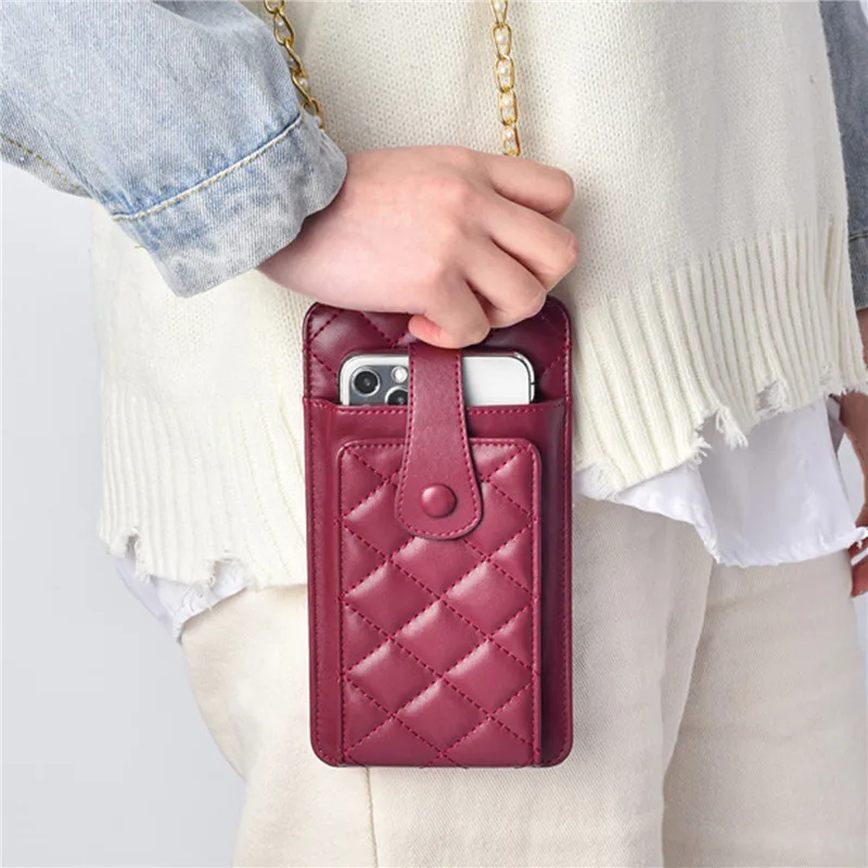 Ladies Fashion Mobile Phone Bag Lingge Sweet One Shoulder Messenger Small Bag Multi-card Ladies Solid Color Zipper Wallet