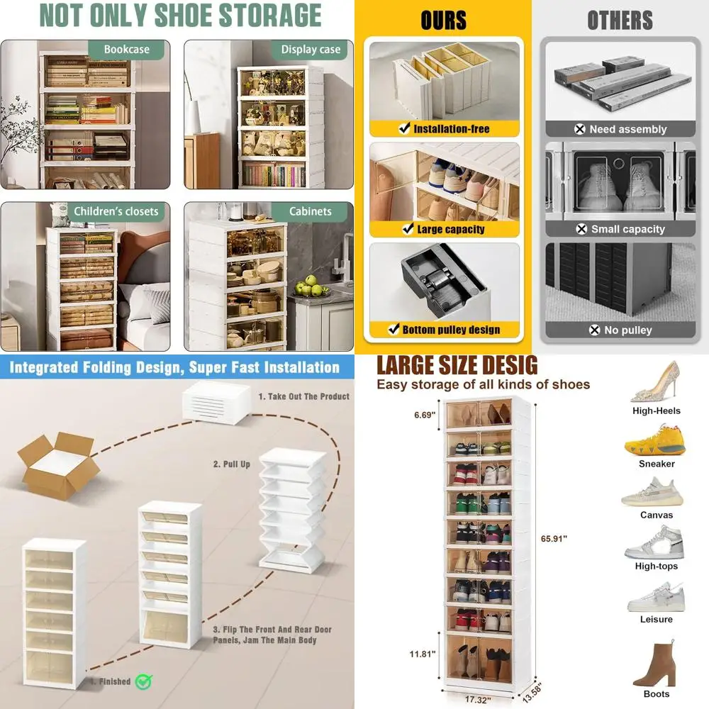 Large 9-Tier Clear Plastic Shoe Storage Cabinet with Lids - Stackable & Easy Assembly