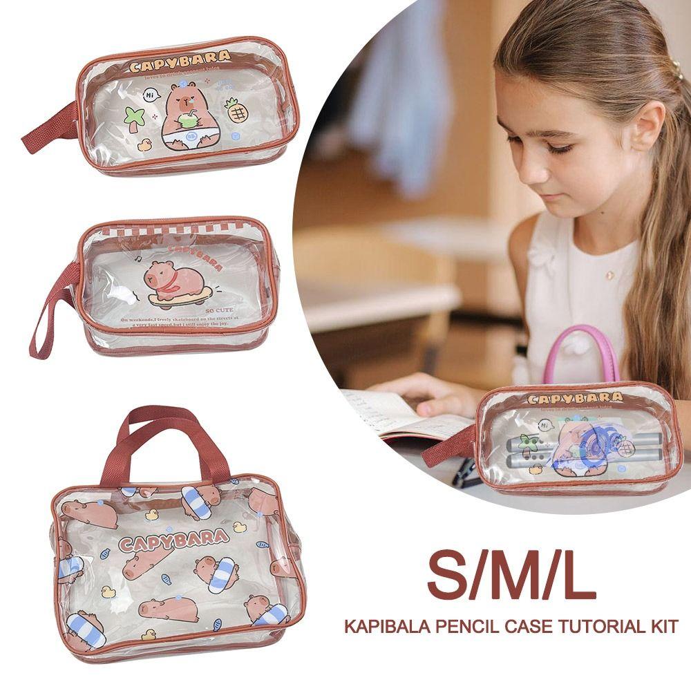 Large Capacity Stationery Storage Bag Double-laye Cosmetic Bag Cute Capybara Pen Bag S