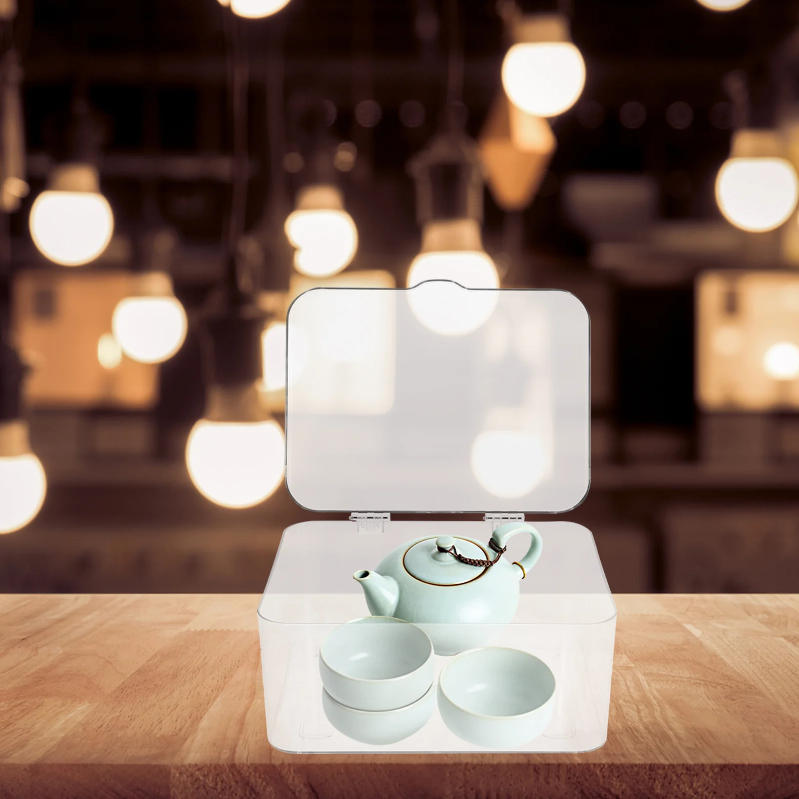 Large Capacity Storage Box Stackable Clear Organizer Bin For Kitchen Tea Set Coffee Mug Cup Container Lid Ps Sturdy