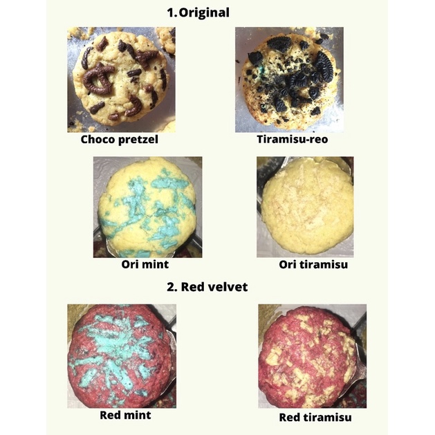 Soft-baked cookies berukuran besar dengan varian rasa original dan red velvet.