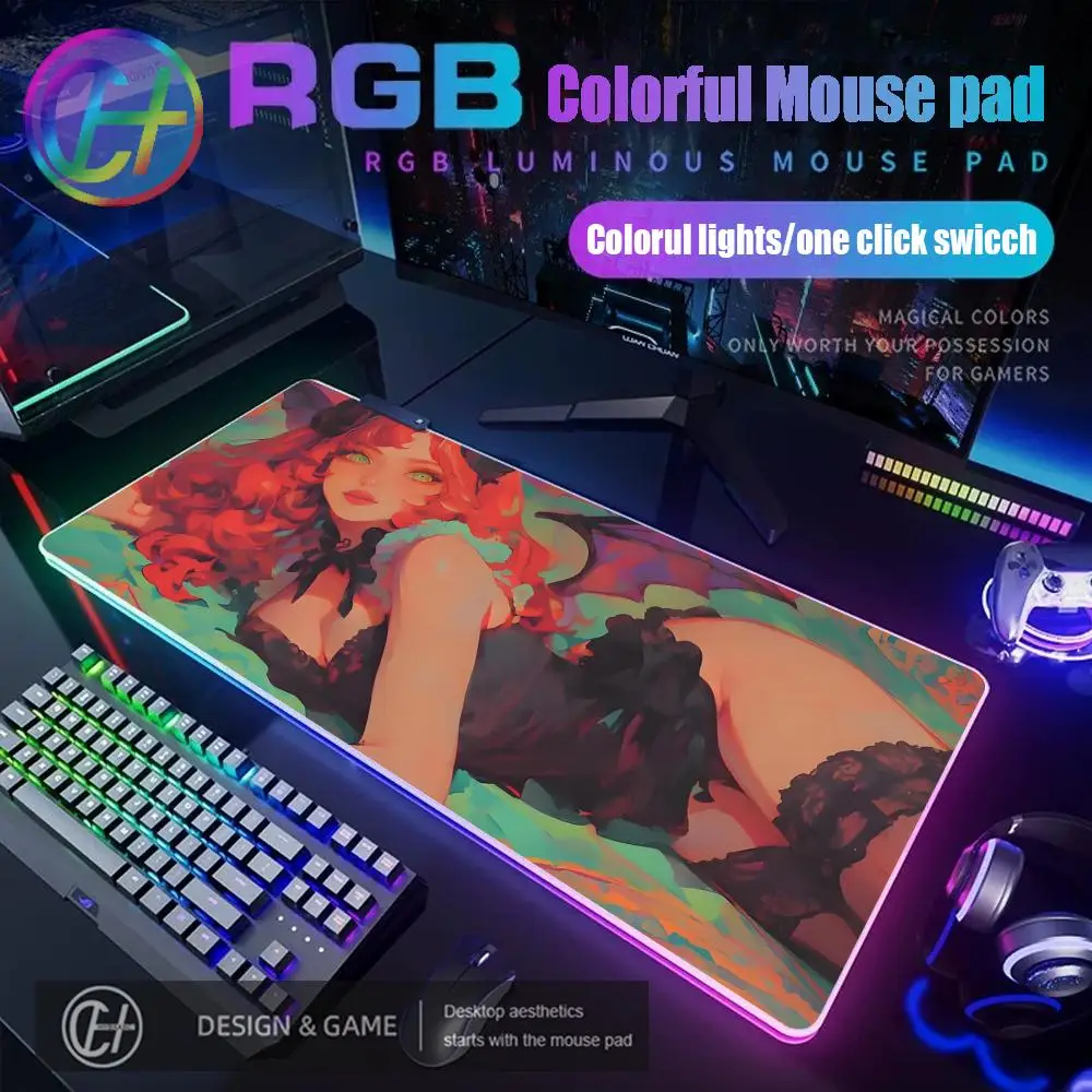 Large RGB Mouse Pad Anime Girl Gaming Speed Mousepad LED Luminous Table Mats XXL Gamer Computer Backlight Keyboard Accessories