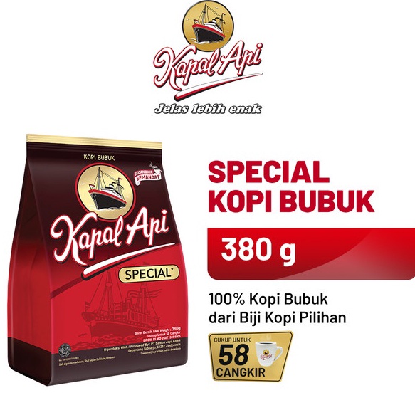 Laris KAPAL API Special Merah 380 gr Kopi Kapal Api Special terbuat dari paduan biji kopi berkualitas "Special" menghasilkan aroma dan rasa yang jelas lebih enak, siap memberikan semangat untuk memulai hari. Tersedia dalam kemasan bag 380gr, cukup untuk 58 cangkir. komposisi :100% Kopi murni - Fast respon jam kerja Senin - Sabtu pukul 8.00 - 16.00, Minggu atau hari libur Off - Mohon mencantumkan warna/gambar/varian pilihan dan cadangannya (jika ada) di kolom pemesanan ya. Jika tidak mencantumkan pilihan, maka akan kami kirimkan sesuai stok yang ready!!! - Pengiriman pada Hari yang sama (malamnya). - Jika barang yang di pesan kosong dan tidak ada respon selama 1x24 jam maka akan di kirim secara random. - Periksa kembali NOMOR HP (TELP) & ALAMAT LENGKAP. Guna mempercepat dan memperlancar pengiriman. - BARANG YANG SUDAH DI BELI TIDAK BISA DI KEMBALIKAN. - Gudang kita ada di Beberapa Alamat Jabodetabek... Jadi pengiriman tidak selalu sesuai alamat toko ini yaaa.. >>>> MEMBELI = SETUJU