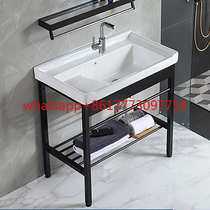 Laundry Basin with Washboard Stainless Steel Floor-Standing Rack Outdoor Laundry Tub Ceramic Laundry Tub Integrated
