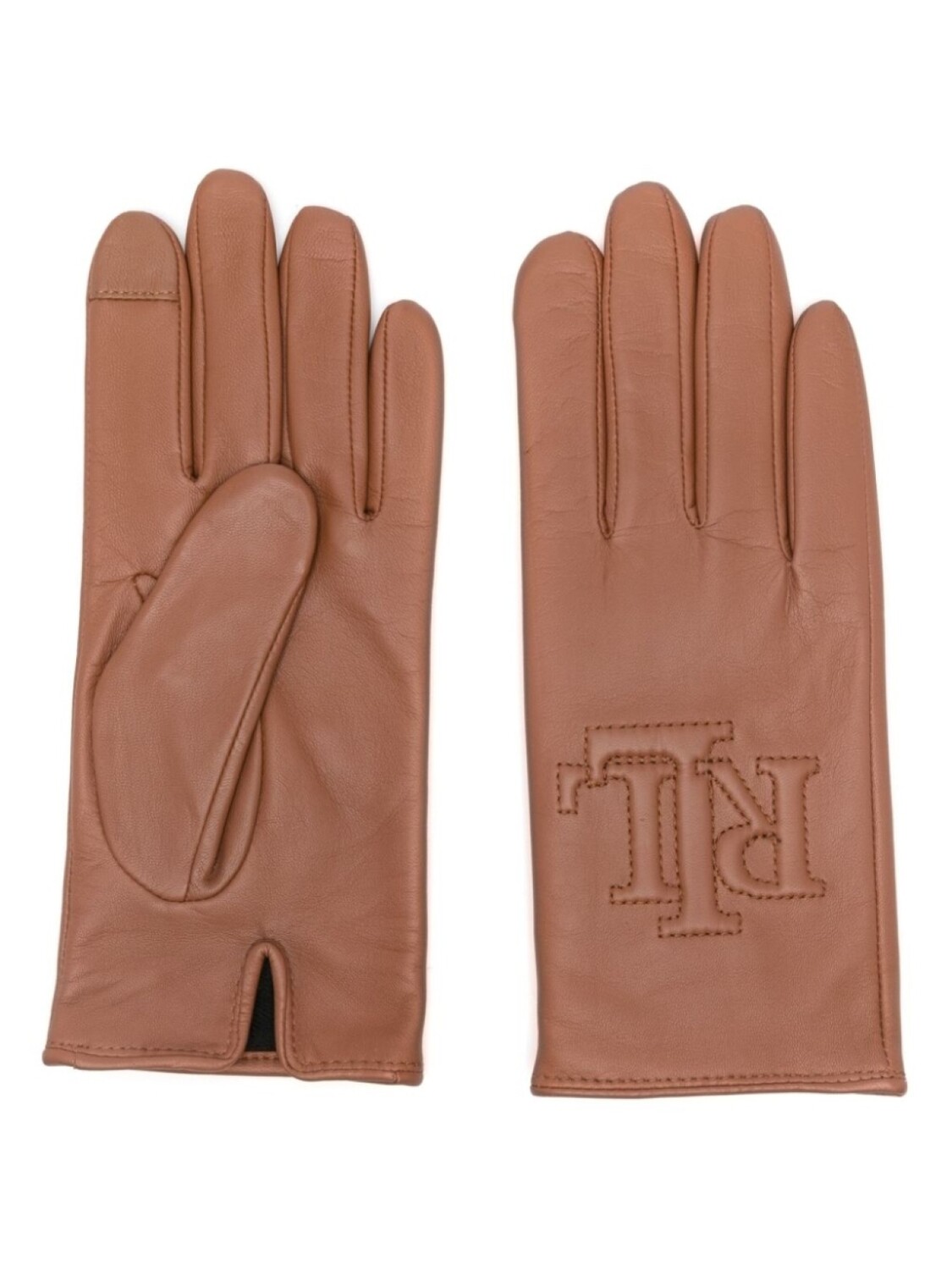Lauren Ralph Lauren кожаные перчатки с тисненым логотипом, коричневый