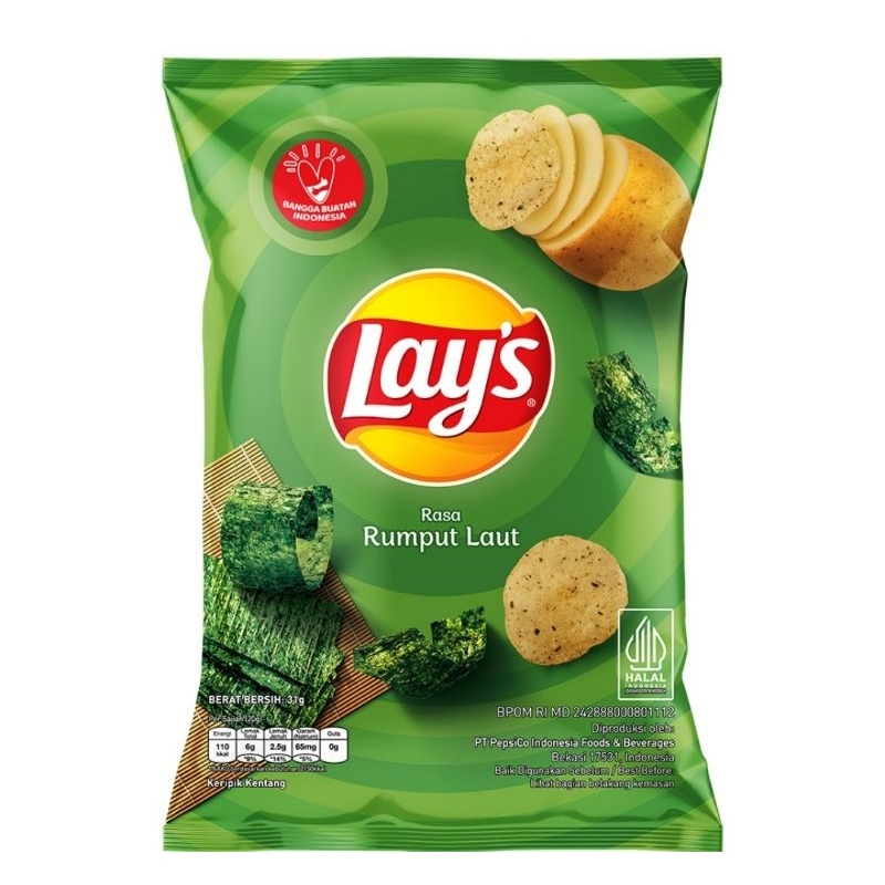 Lay's kembali lagi! Salah satu keripik kentang favorit masyarakat Indonesia. Lay's Potato Rumput Laut adalah salah satu varian rasa dari keripik kentang yang telah dikenal oleh masyarakat di berbagai belahan dunia sejak tahun 1945. Keripik kentang ini memiliki keunikan karena potongannya yang sangat tipis sehingga renyah ketika digigit. Pada Lay's Potato Rumput Laut kita dapat menikmati rasa rumput lain yang gurih dan istimewa. Lay's Potato Rumput Laut 31 g diproduksi dari kentang pilihan dan dimasak dengan bahan-bahan berkualitas. Keripik kentang tipis ini juga diciptakan untuk menjadi makanan ringan yang enak dan sehat karena tidak mengandung lemak jenuh sama sekali. Oleh sebab itu, tidak akan ada keraguan dalam setiap gigitnya. Rasakan gurihnya keripik kentang dengan rasa dan aroma rumput laut asli dalam Lay's Potato Rumput Laut!