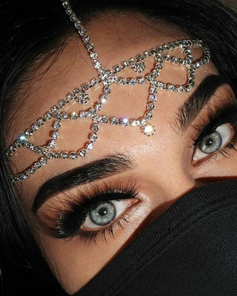 Layered Rhinestone Cutout Head Chain, Silver