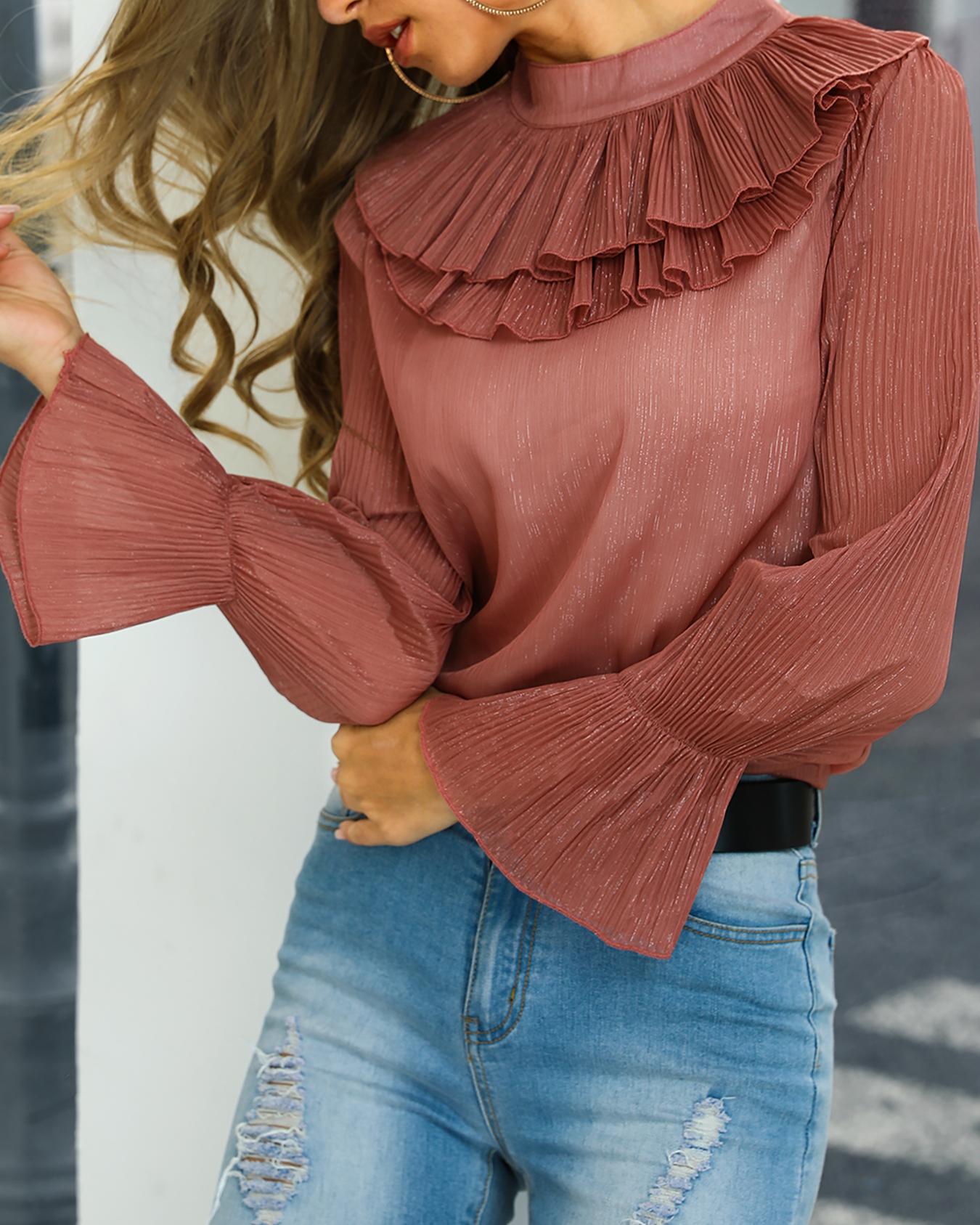 Layered Ruffles Design Keyhole Back Blouse