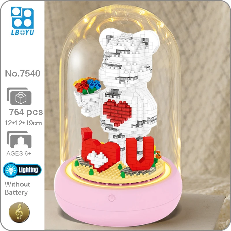 Lboyu 7540, любовь, цветок, сердце, медведь, животные, животные, светильник, дисплей, поворотная музыкальная шкатулка, строительные детали, игрушк...