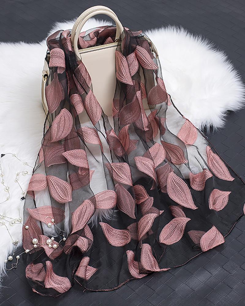 Leaf Pattern Mesh Scarf, Pink