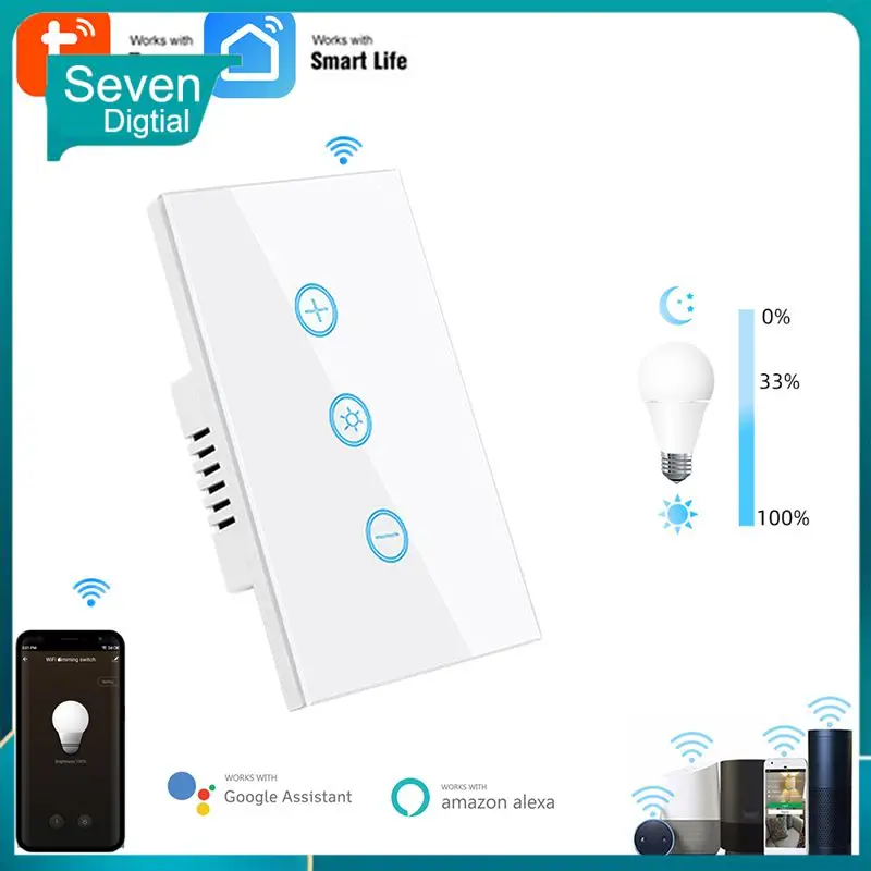 Led Backlight Smart Switch Remote Control Wireless Us Standard Switch Infinite Dimming Voice Control Smart Life/tuya App Timing