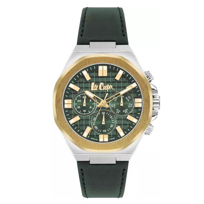 Lee cooper watch for men, multi-function, 46 mm, leather strap, lc07983. 277 – green