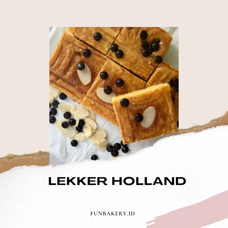 Lekker Holland. Kue satu ini konon berasal dari negeri kincir angin. Makan kue ini berasa makan cake dan cookies dalam satu gigitan.