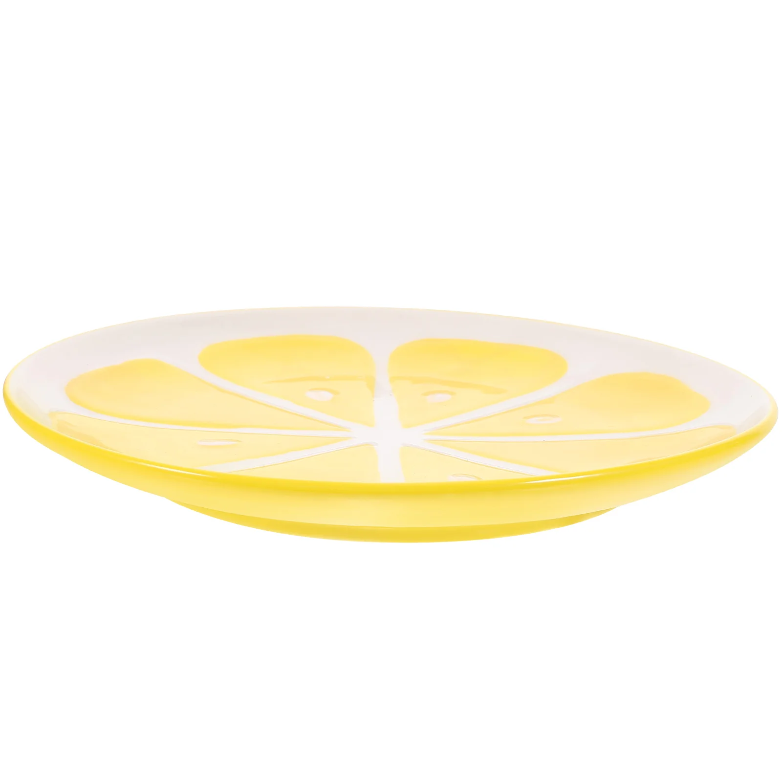 Lemon Ceramic Plate Fruit Pattern Design Smooth Bright Surface Easy Clean Exquisite Craftsmanship Serving Dish for Party