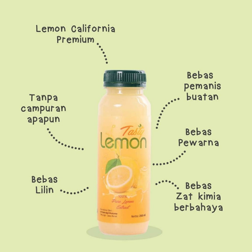 Lemon Murni, bebas pewarna, bebas pemanis buatan, bebas zat kimia berbahaya