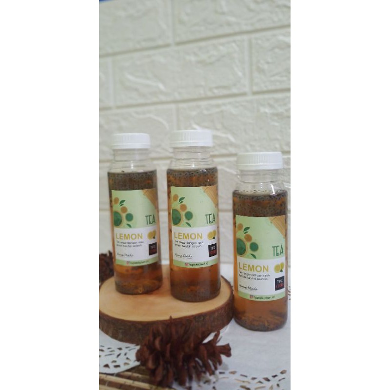 Teh lemon dilengkapi dengan biji selasih, cocok untuk menyegarkan harimu