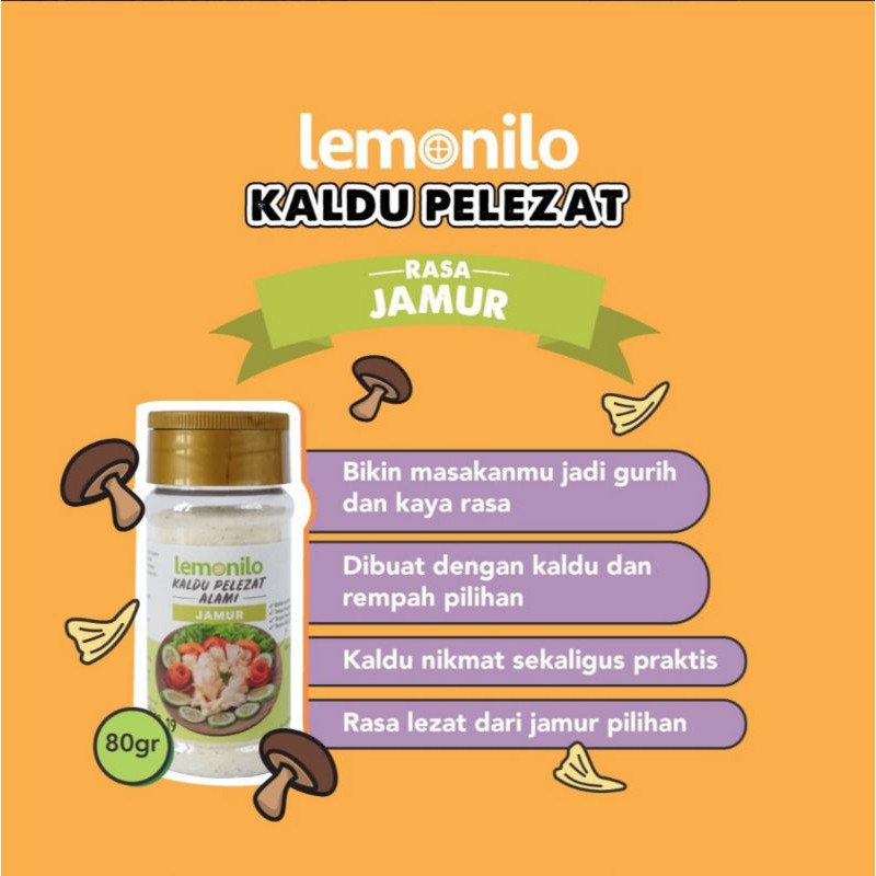 Terlalu banyak bumbu penyedap yang tidak ramah tubuh beredar di pasaran. Untuk itulah, Lemonilo menciptakan Kaldu Pelezat Alami Jamur. Kaldu ini merupakan kaldu non MSG tambahan di dalamnya karena bahan alami yang digunakan yaitu jamur sudah mempunyai MSG alami yang lebih ramah terhadap tubuh. Bebas dari bahan pengawet, perasa, dan pewarna buatan, kaldu bubuk ini tetap dapat menghasilkan rasa umami yang nikmat untuk setiap makanan dan sajian sehat Anda. Cocok untuk makanan berkuah seperti sup, gulai, ataupun beragam masakan Indonesia. Kelezatan alami pada pada setiap masakan Anda dan seluruh anggota keluarga Anda kini bukan lagi impian!