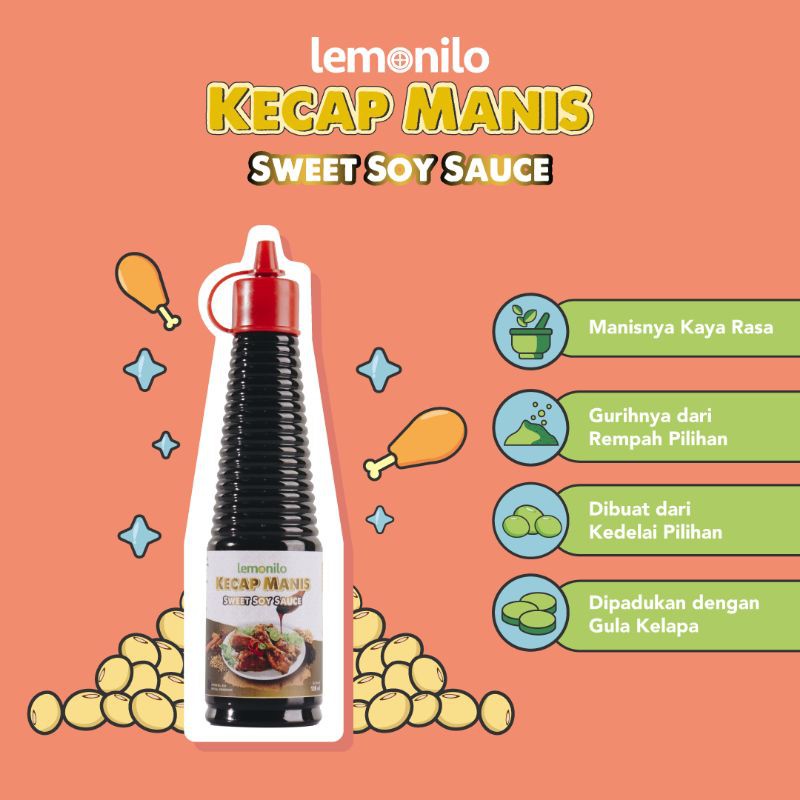 Lemonilo Kecap Manis dibuat dari kedelai putih segar bekualitas dan gula kelapa hasil petani lokal, tanpa penguat rasa, pengawet, serta pewarna sintetis sehingga menghasilkan kecap dengan rasa manis yang pas.