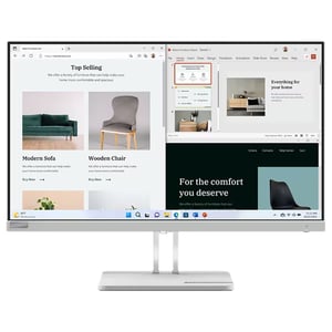 Lenovos L27e-40 Monitor is primed for productivity and crafted to entertain. Its high-resolution, 1920 x 1080, FHD display ensures that all your work images, documents, and movies look crystal-clear. Dont miss a thing on excel sheets and other work documents on the expansive 27-inch screen. With its wide viewing angles, the VA panel lets you easily collaborate with colleagues or enjoy movies with your friends and family. The 3-side NearEdgeless display design means that you get a lot more screen real estate packaged into a smaller form factor when compared to traditional 27-inch monitors. Working on color-critical work is also possible, using the 72% NTSC color space coverage of the panel. Gaming on the Lenovo L27e-40 is a great experience with its support for AMD FreeSync and fast 100 Hz refresh rate. The availability of a vast selection of ports including two HDMI and a VGA allows you to connect multiple devices to your monitor, eliminating the need to remove and plug-in devices when you decide to use any other device such as a console. Keep your desk setup looking clean and minimal with the displays 7.0 mm slim head, stylish stand, and cloud grey color. Get rid of all cable clutter using the cable management and phone stand that is built into the monitors base and stand. Adjusting your screens basic and advanced settings is now more accessible with Lenovos Artery Software. Your eyes stay protected from strain and harmful blue light while you work or play, thanks to the Eyesafe 2.0 and TV Hardware Low Blue Light certifications. The use of 85% recycled resin in the product plastic makes this monitor more environmentally friendly. The Lenovo L27e-40 Monitor is made to perfectly complement both your workflow and your work breaks.