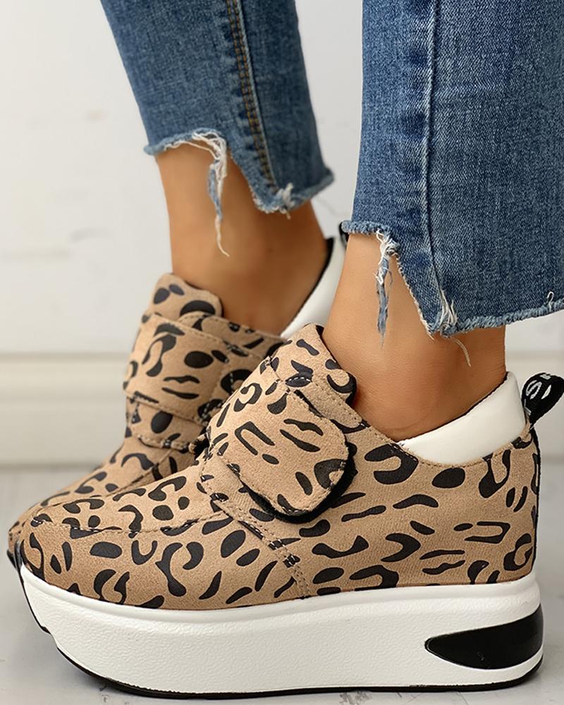 Leopard Design Velcro Platform Wedges