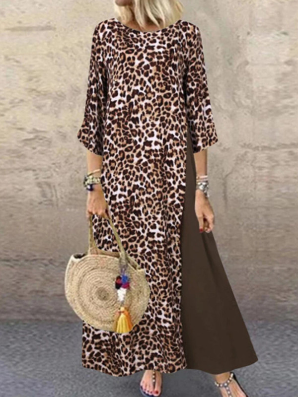 maxi dresses,leopard splice long sleeve maxi dress