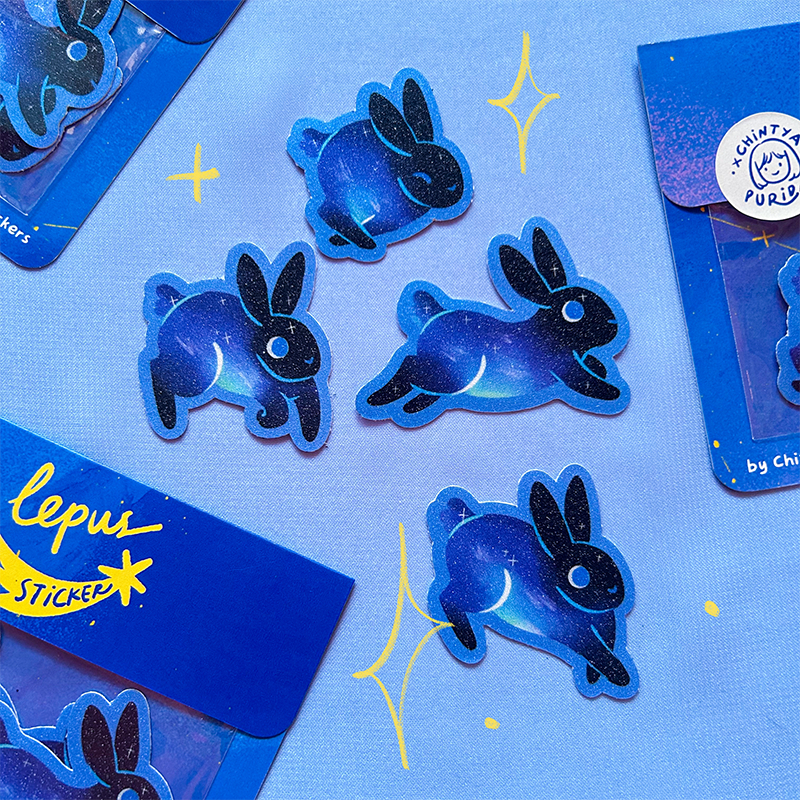 Para kelinci berbintang lompat dan turun dari langit malam ✨