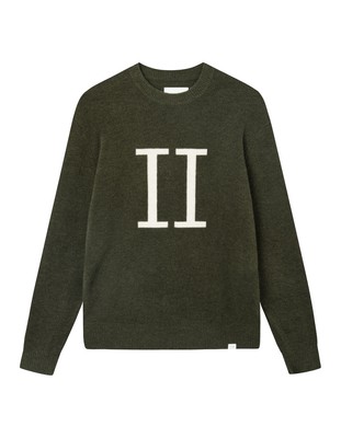 Les Deux Encore Intarsia Recycled Knit Crewneck Мужчины оливковая ночь/слоновая кость, Зеленый