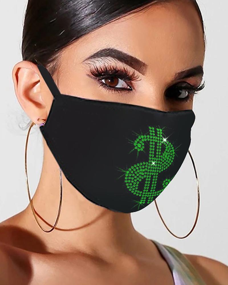 Letter Pattern Bling Rhinestone Face Mask, Style2