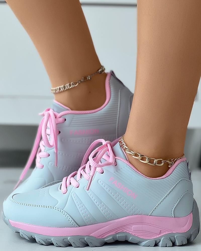 Letter Pattern Lace-up Sneakers, Pink&gray